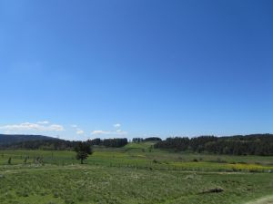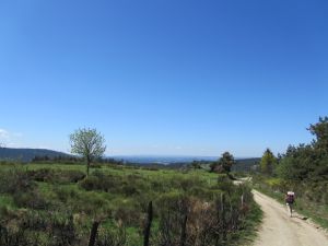 Dès le départ une petite côte nous attend, pas très difficile mais assez longue. Elle nous mène en forêt pour rejoindre le village de Chanaleilles. En montant dans la forêt le nez dans le guidon, nous loupons un embranchement. Nous grimpons jusqu’en haut et là gros doute car 3 possibilités. Après bien des hésitations, nous optons pour partir vers la ligne à haute tension que nous trouvons sur la carte. C’était la bonne option, un cultivateur rencontré nous confirme que le chemin est juste en dessous mais que nous allons le rejoindre en continant.