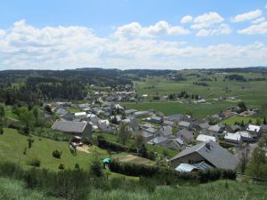 Après le Rouget, le premier village traversé est St Alban sur Limagnole (950 m). Il s’agit d’une petite ville. Nous passons près de l’hôpital psychiatrique, il couvre une grande partie du village. Cela explique la rencontre surprenante quand on ne s’y attend pas de personnes portant des casques. Nous apprendrons que cet hôpital a une grande notoriété.