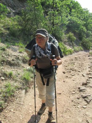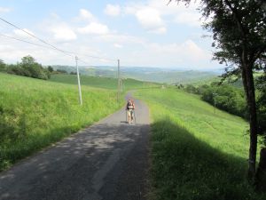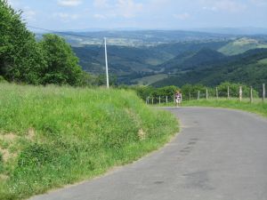 Nous laissons Nicole à Estaing, elle ne veut pas aller plus loin. Nous reprenons la route, ce soir nous ferons halte à Massip (juste avant Golinhac). Nous marchons assez longtemps sur une route goudronnée jusqu’à un virage où l’on prend un chemin de terre qui nous amène à un petit pont. La route continue vers Montegut, ce sera une succession de tronçon bitumé. Sur le plateau, nous avons une très belle vue sur les méandres du Lot. La fin de l’étape tourne au calvaire pour Andrée.